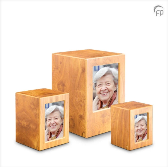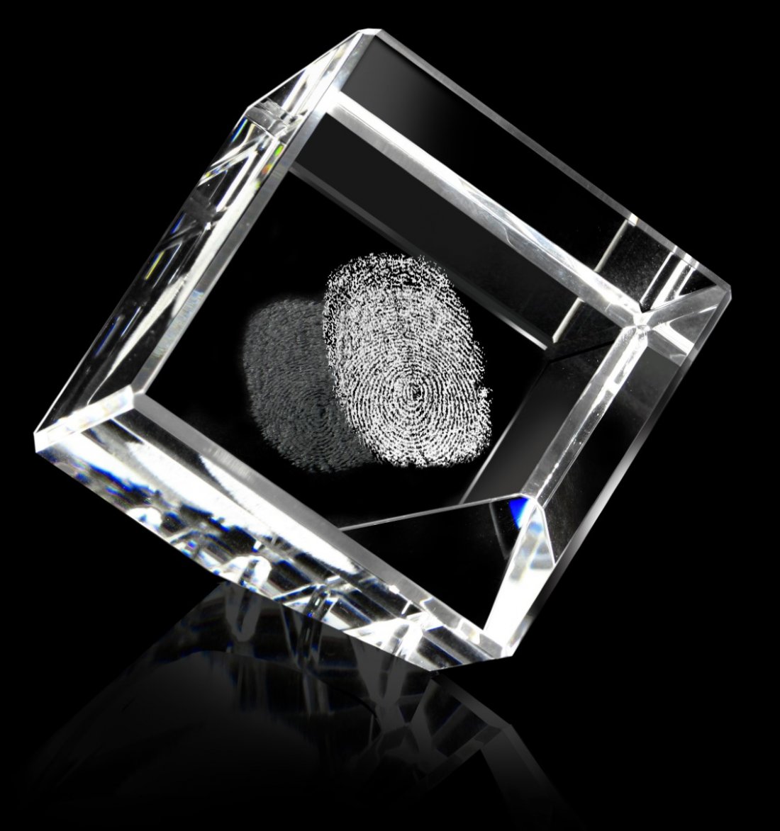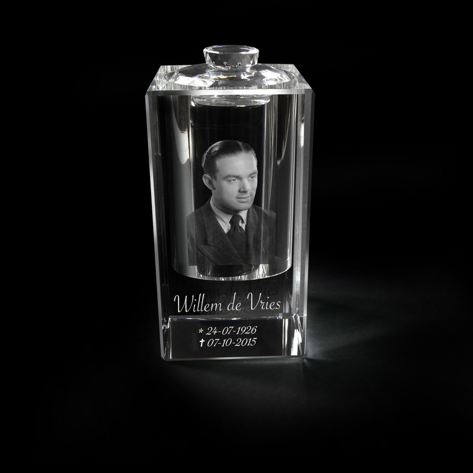 Gedenkglas | glazen blok met 3D foto, as en vingerafdruk