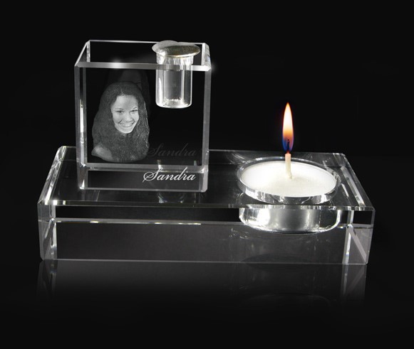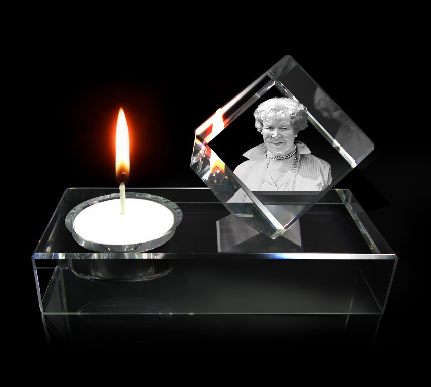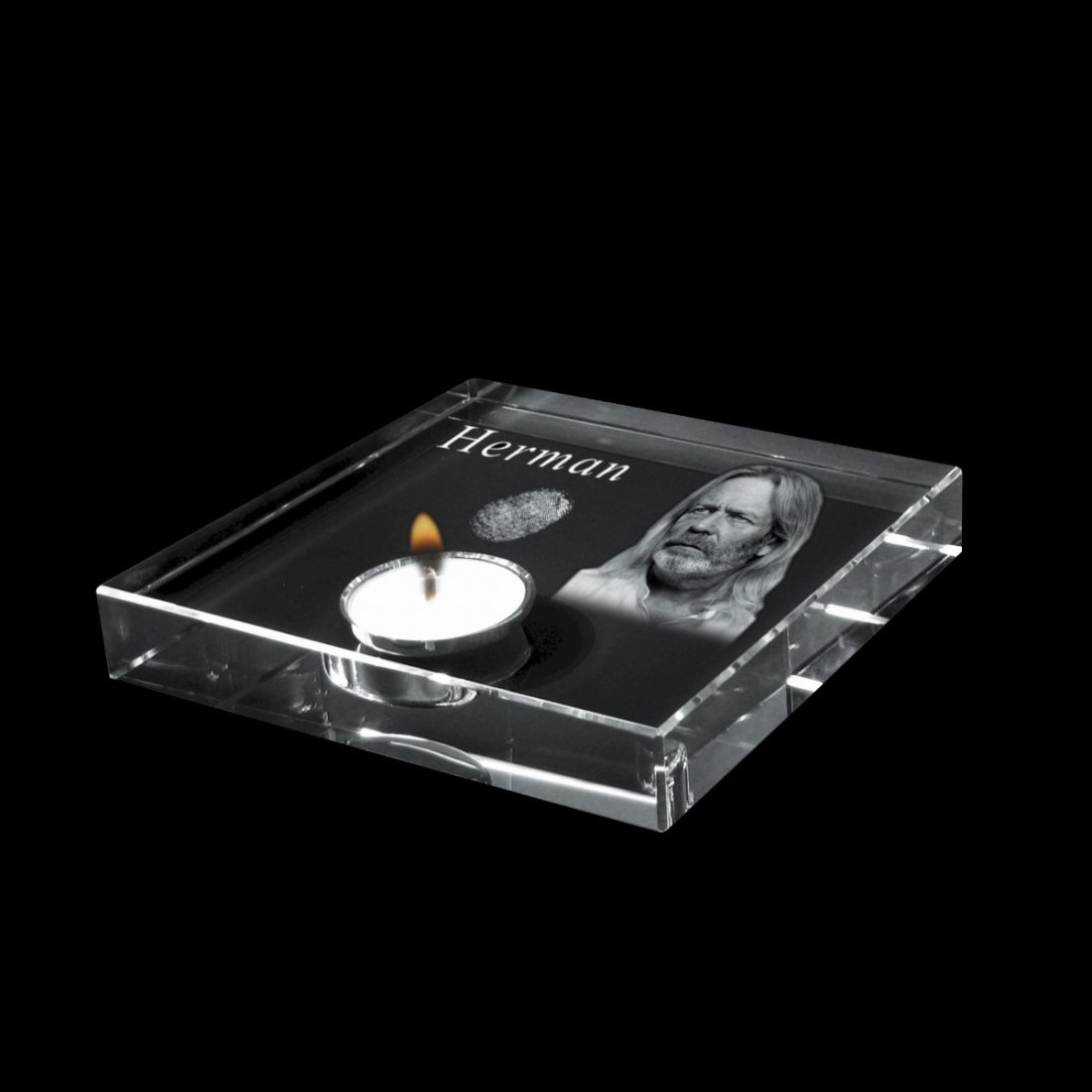 Gedenkglas | glazen basis met waxine voor glazen blok met 3D foto
